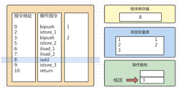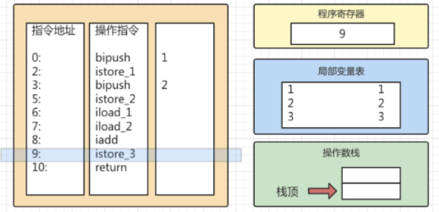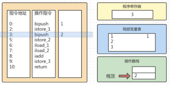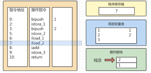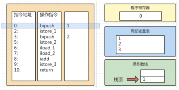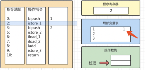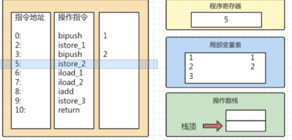 它是一个后进先出的栈,根据字节码指令,往栈中写入或取出数据。操作包括:复制、交换、求和等