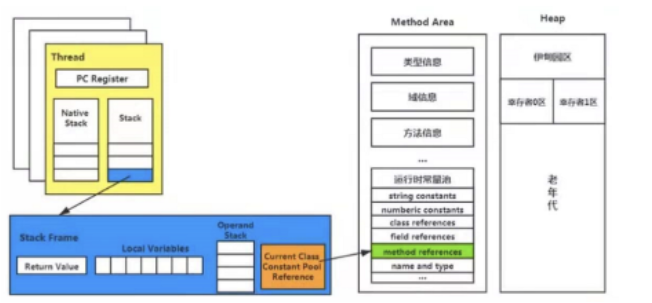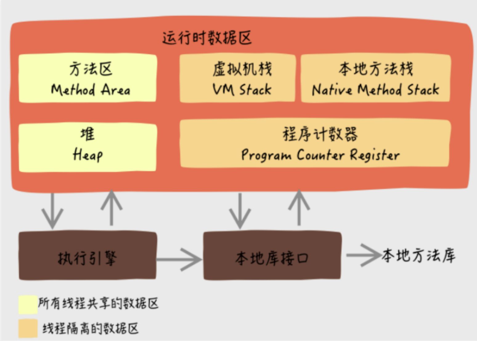 除了运行时数据区,JVM里面还包括执行引擎和本地库接口。