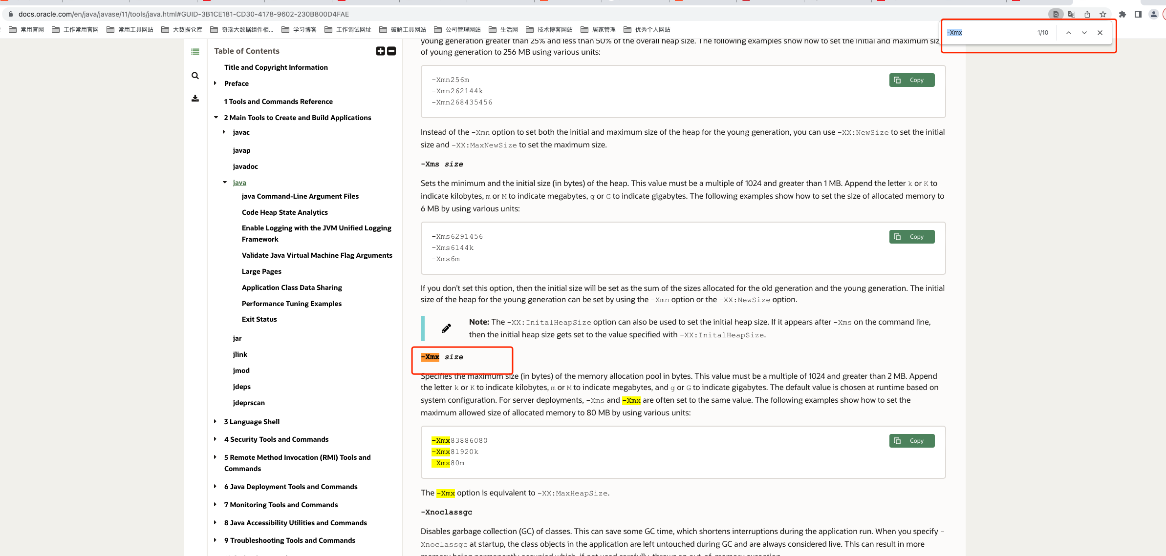 jvm可以设置的参数指定(jdk11和jdk8)官网地址:
