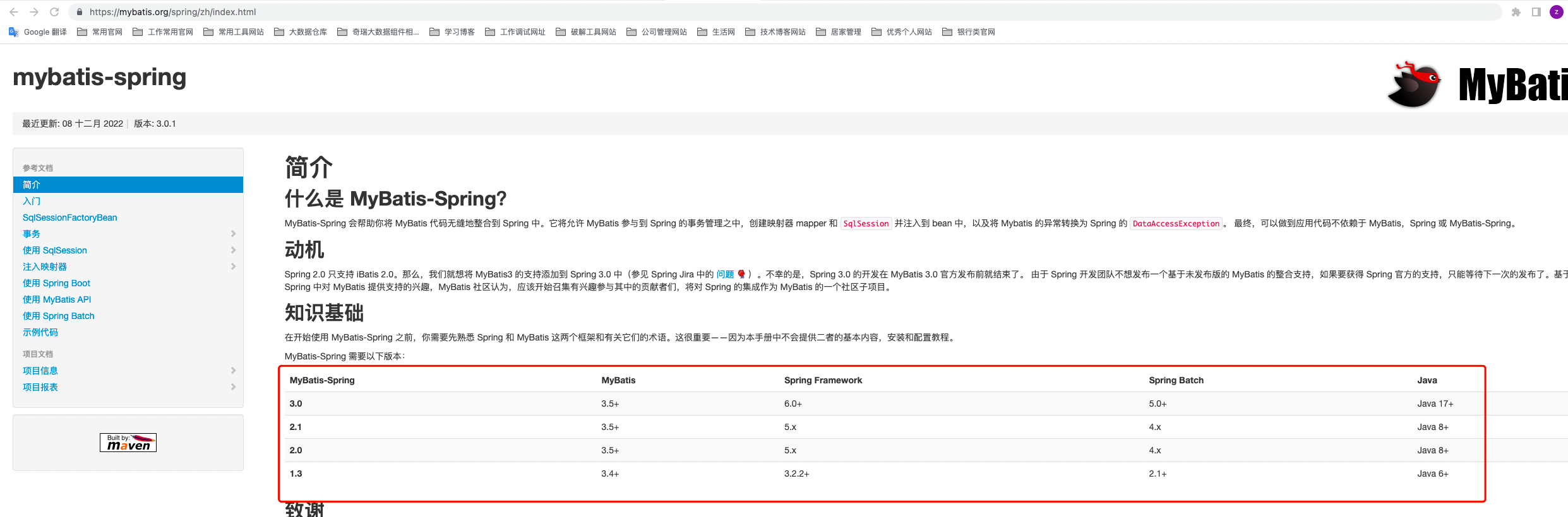从mybatis-spring官网,查看集成Spring framework对应的版本匹配规则,如图: