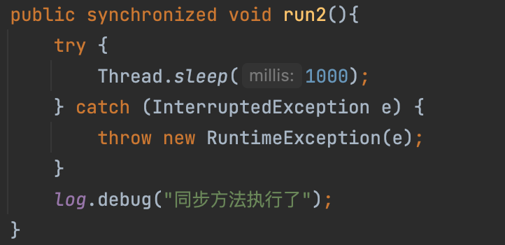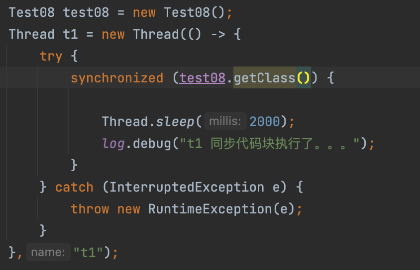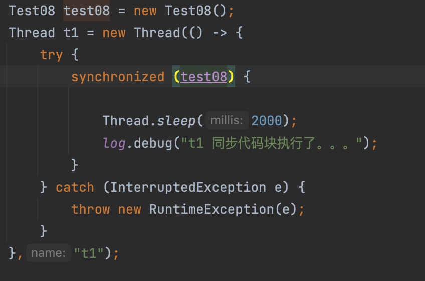 Thread t2 = new Thread(()->{ log.debug("t2 尝试获取锁"); synchronized (lock){ log.debug("t2 获取锁"); try { Thread.sleep(1000); } catch (InterruptedException e) { throw new RuntimeException(e); } synchronized (lock){ log.debug("t2 再次获取锁"); try { Thread.sleep(1000); } catch (InterruptedException e) { throw new RuntimeException(e); } } } log.debug("t2 执行完成"); });