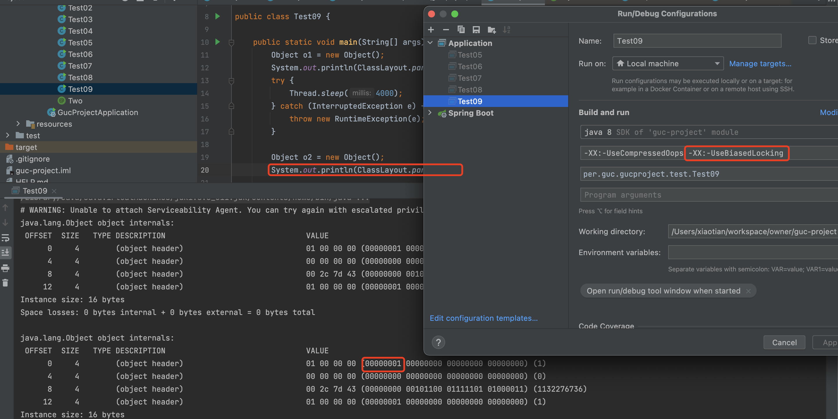使用下面代码做对象头的打印输出 ClassLayout.parseInstance(object).toPrintable()