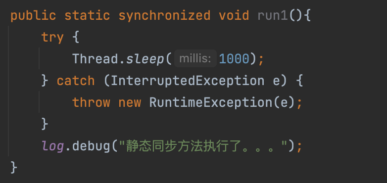 public static void main(String[] args) { Thread t1 = new Thread(()->{ log.debug("t1 尝试获取锁"); synchronized (lock){ log.debug("t1 获取锁"); try { Thread.sleep(1000); } catch (InterruptedException e) { throw new RuntimeException(e); } synchronized (lock){ log.debug("t1 条件未满足,进入了等待"); try { lock.wait(); } catch (InterruptedException e) { throw new RuntimeException(e); } log.debug("t1 被唤醒,继续执行"); try { Thread.sleep(1000); } catch (InterruptedException e) { throw new RuntimeException(e); } } } log.debug("t1 执行完成"); });