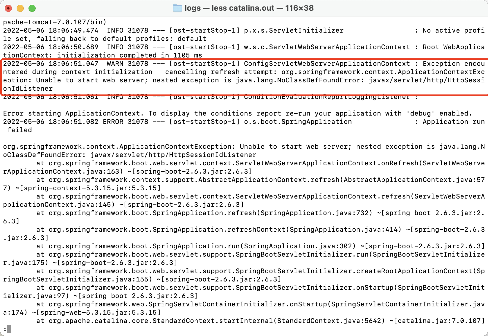 3.使用tomcat7启动上面的项目会提示:Unable to start web server; nested exception is java.lang.NoClassDefFoundError: javax/servlet/http/HttpSessionIdListener。