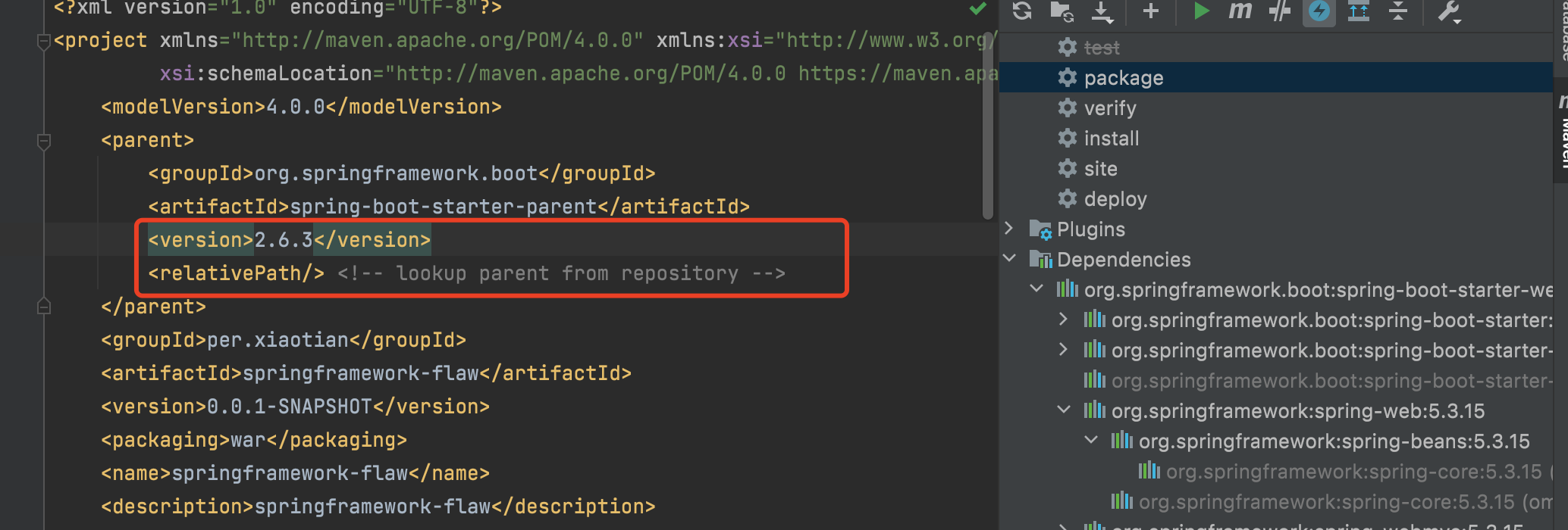 3.在生成的pom里面将spring-boot-parent的版本改为2.6.3,改完之后重新同步拉取下maven仓库