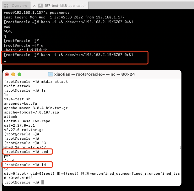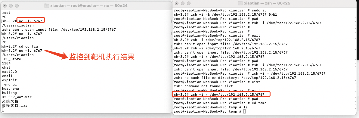 2.在靶机上输入shell脚本命令,反弹shell:mac->(攻击kali)