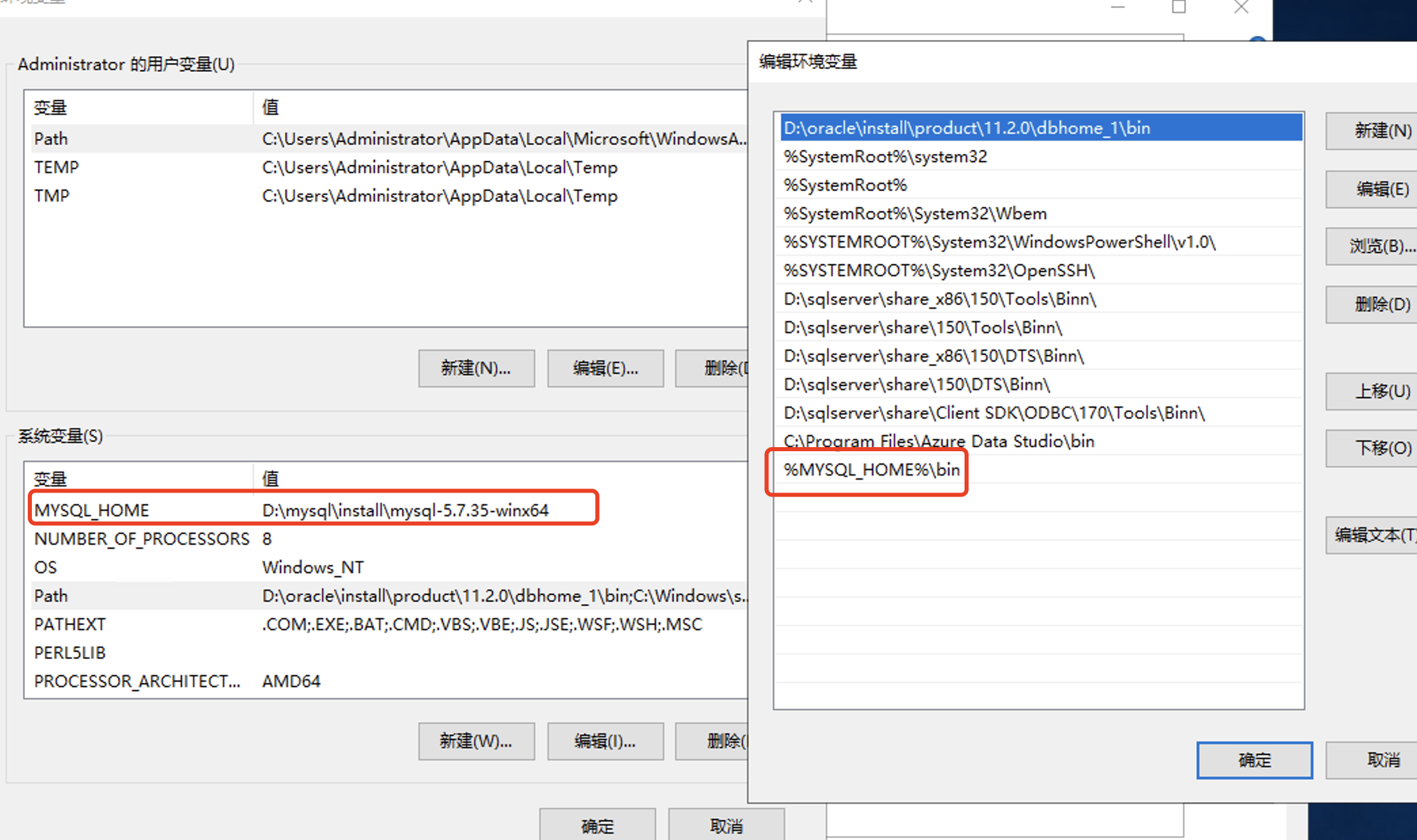 系统变量:MYSQL_HOME=C:\mysql-5.7.35-winx64