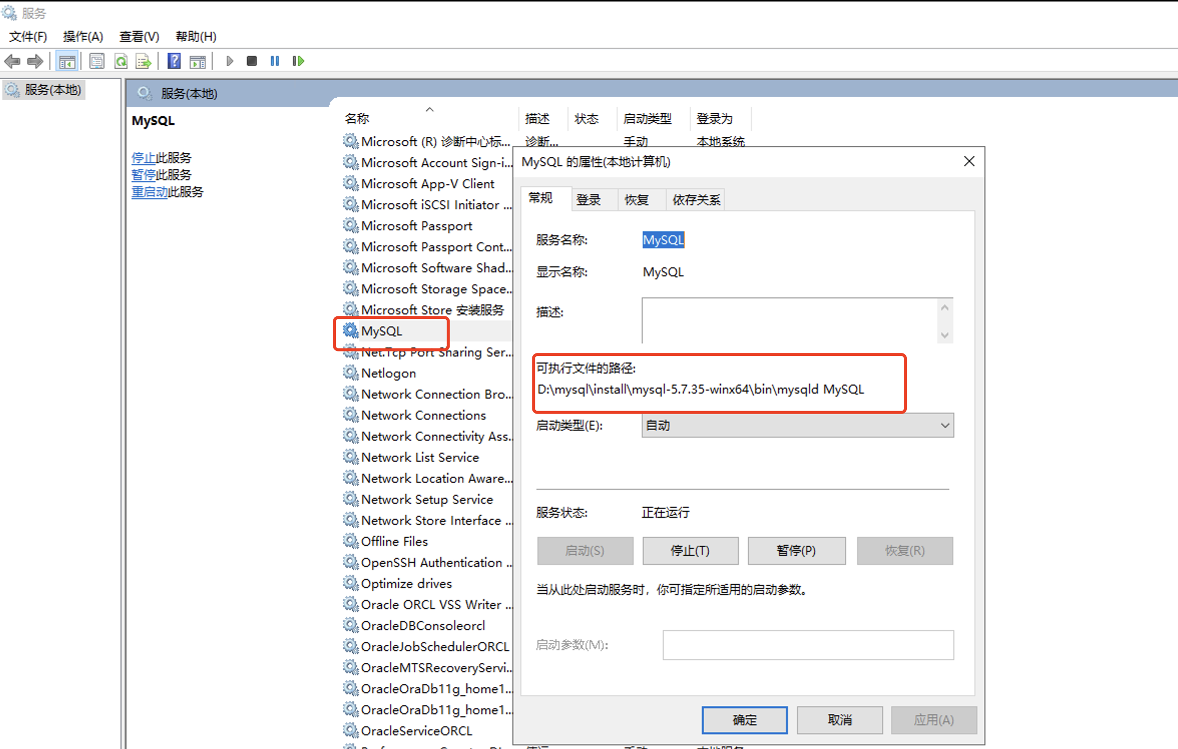 win+R打开运行窗口,输入services.msc,进入服务窗口,找到mysql服务,右击属性如下图找到执行位置目录
