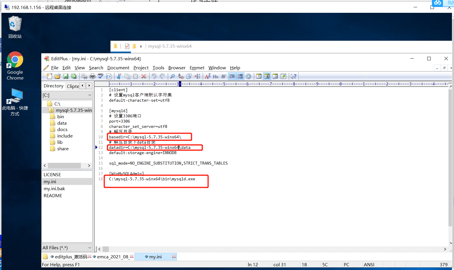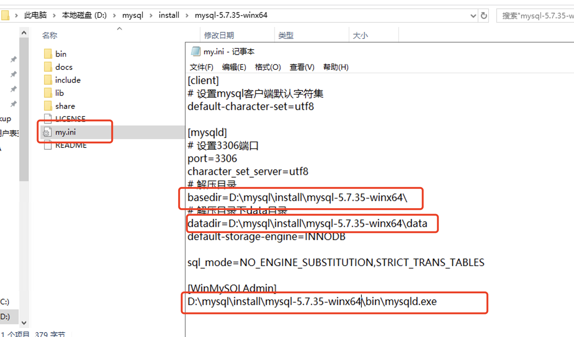 复制到对应解压目录下,修改my.ini的内容,如图所示: