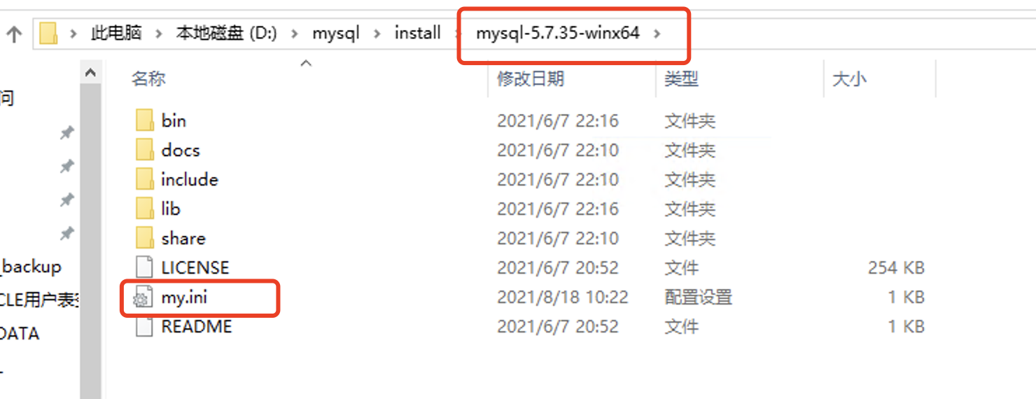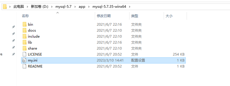 2.在解压目录下创建my.ini