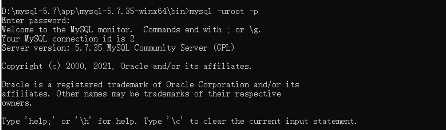 4.执行登录mysql命令:mysql -uroot -p