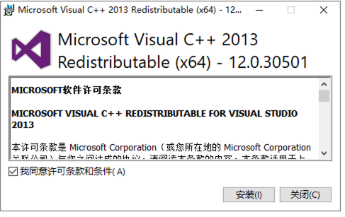 解决:需要安装Visual C++ 2013版的包。