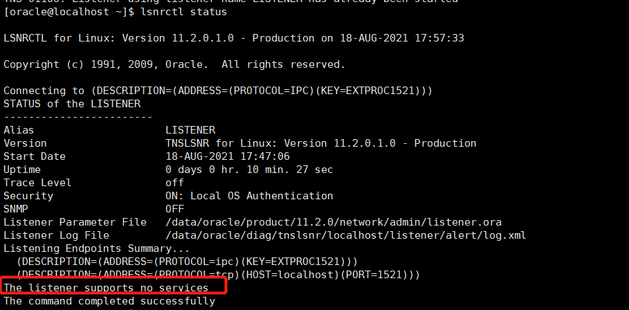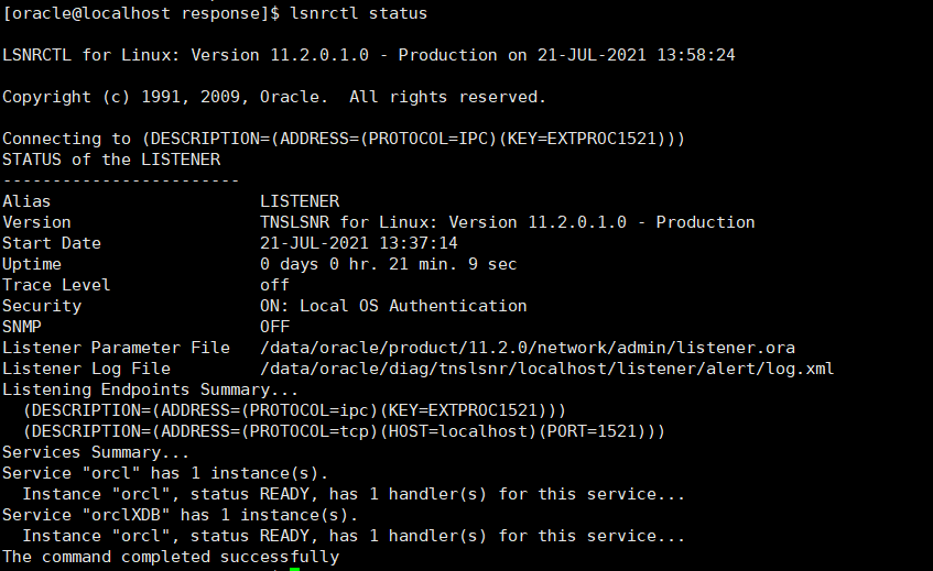 /data/oracle/product/11.2.0/bin/lsnrctl start