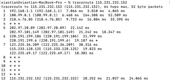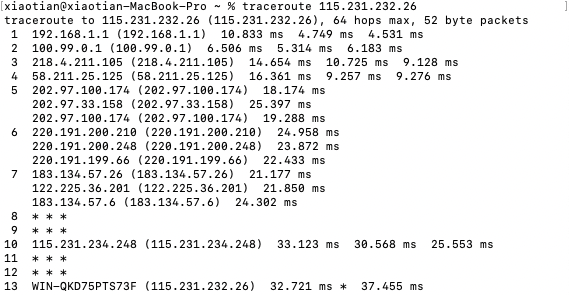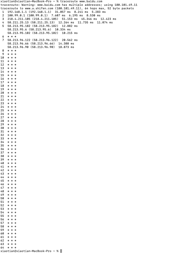 *表示可能防火墙封掉了ICMP的返回信息,所以我们得不到什么相关的数据包返回数据。