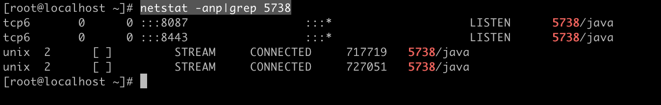 netstat指令,通过pid(进程号)查询对应应用启动端口,如图: