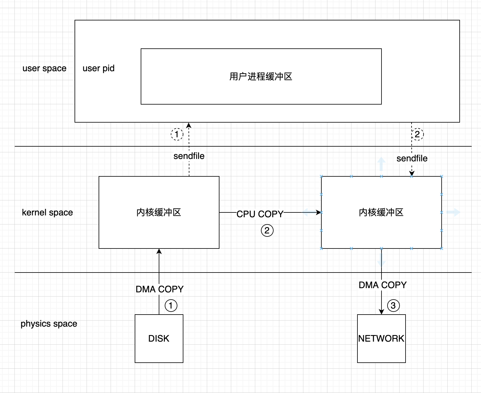 通过用户缓冲区共享的方式,减少了一次CPU COPY的过程,CPU COPY可以直接从源内核缓冲区拷贝到目标内核缓冲区,具体流程见下图:
