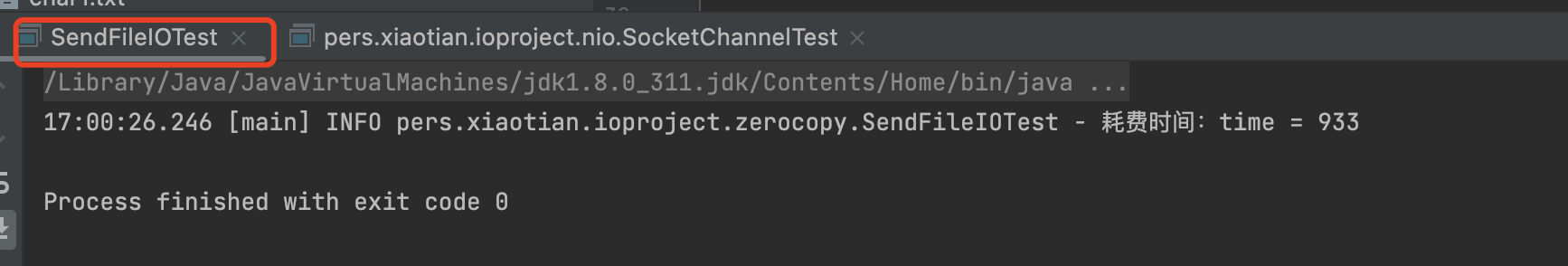 @Slf4j public class SendFileIOTest { public static void main(String[] args) throws IOException { long startTime = System.currentTimeMillis(); File target = new File("2.zip"); if(!target.exists()){ target.createNewFile(); } FileOutputStream fileOutputStream = new FileOutputStream(target); FileChannel targetChannel = fileOutputStream.getChannel(); FileInputStream fileInputStream = new FileInputStream("1.zip"); FileChannel sourceChannel = fileInputStream.getChannel();