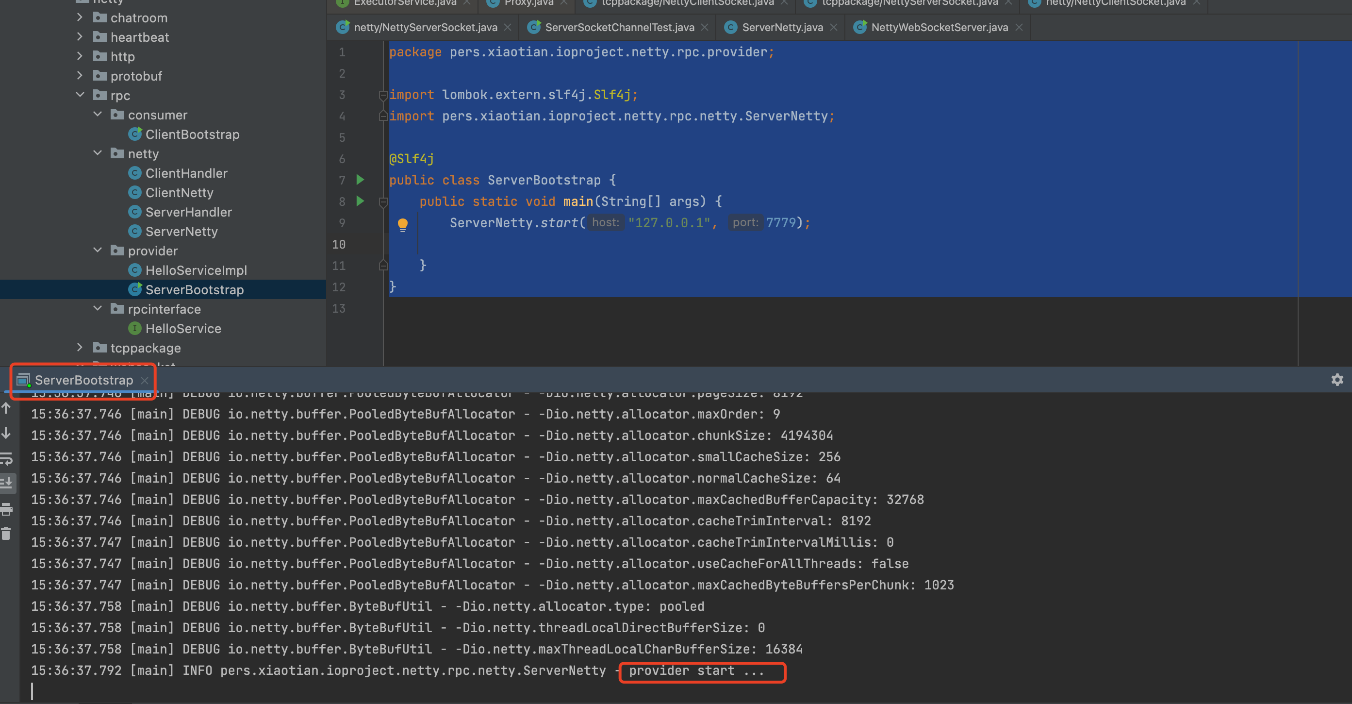 @Slf4j public class ClientBootstrap { static String provideName = "HelloService#sayHello#"; public static void main(String[] args) { ClientNetty clientNetty = new ClientNetty();