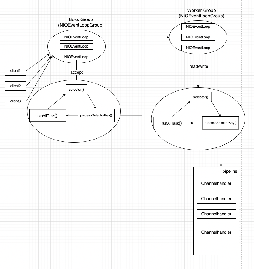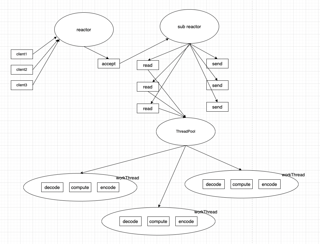 NIO-netty的Reactor模型就是采用主从Reactor架构设计的,具体架构图如下: