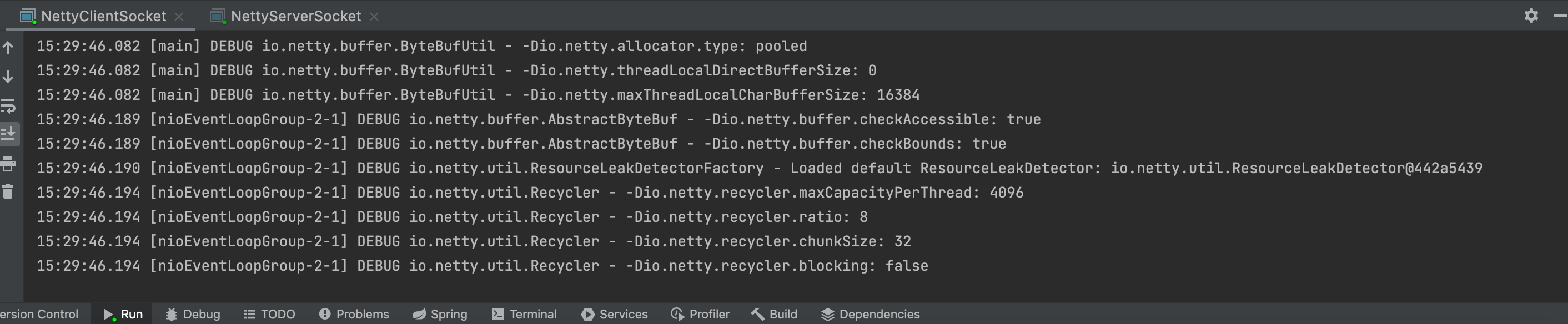 public static void main(String[] args) throws InterruptedException { EventLoopGroup boss = new NioEventLoopGroup(1); EventLoopGroup worker = new NioEventLoopGroup(); try{ ServerBootstrap serverBootstrap = new ServerBootstrap(); serverBootstrap.group(boss, worker) .channel(NioServerSocketChannel.class) .childHandler(new ChannelInitializer<NioSocketChannel>() { protected void initChannel(NioSocketChannel nioSocketChannel) throws Exception { nioSocketChannel.pipeline() .addLast(new MyProtocolDecoder()) .addLast(new ServerHandler()); } }); ChannelFuture channelFuture = serverBootstrap.bind(7777).sync(); channelFuture.channel().closeFuture().sync(); }finally { boss.shutdownGracefully(); worker.shutdownGracefully(); } } }